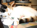 Chewy wants to play with the cat but she just wants to chill so chewy eventually abides.