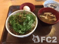 今日のお昼ごはん。「ねぎ玉牛丼とみそ汁」です。